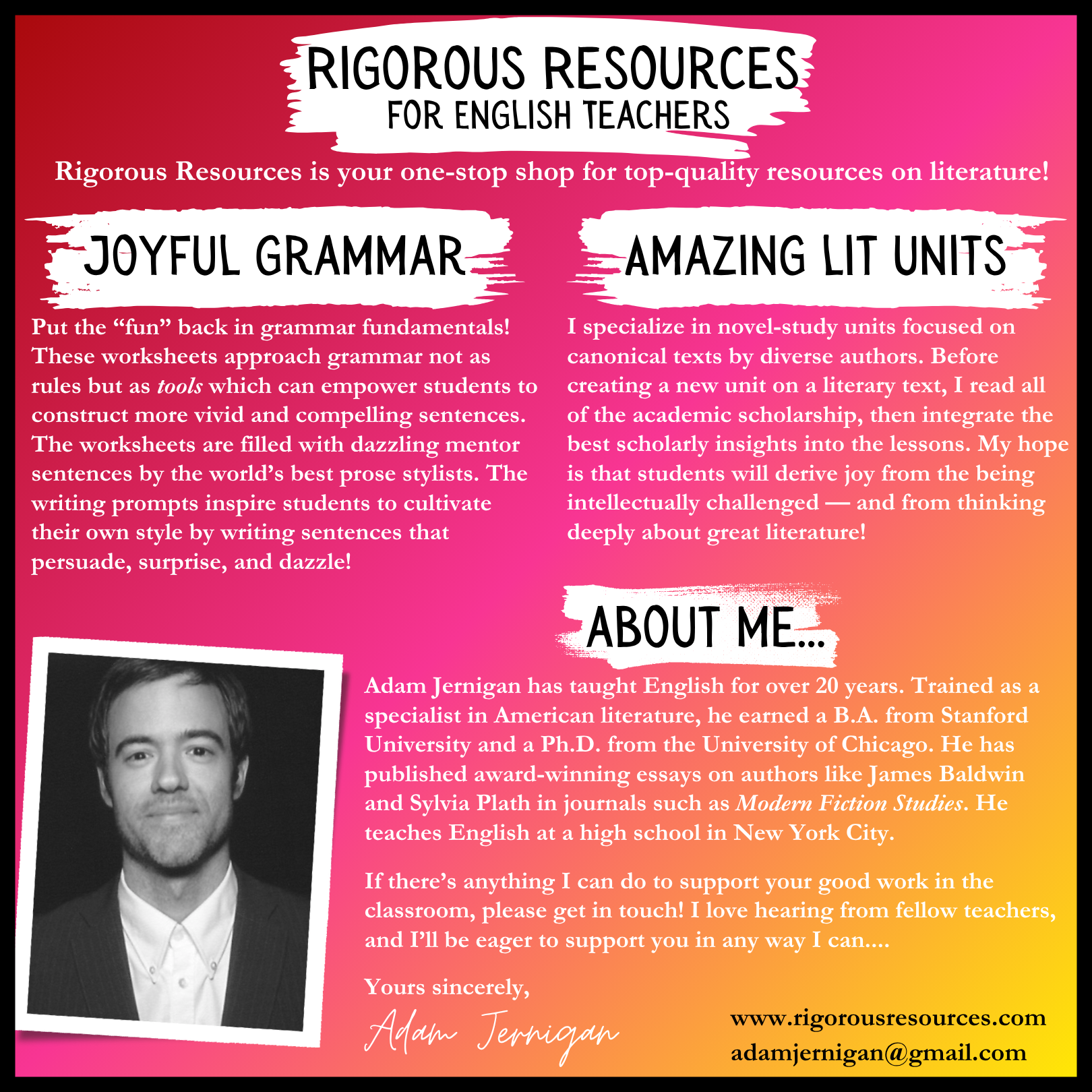 If you have any questions, please don’t hesitate to contact me. I love hearing from fellow teachers who share a passion for great literature!