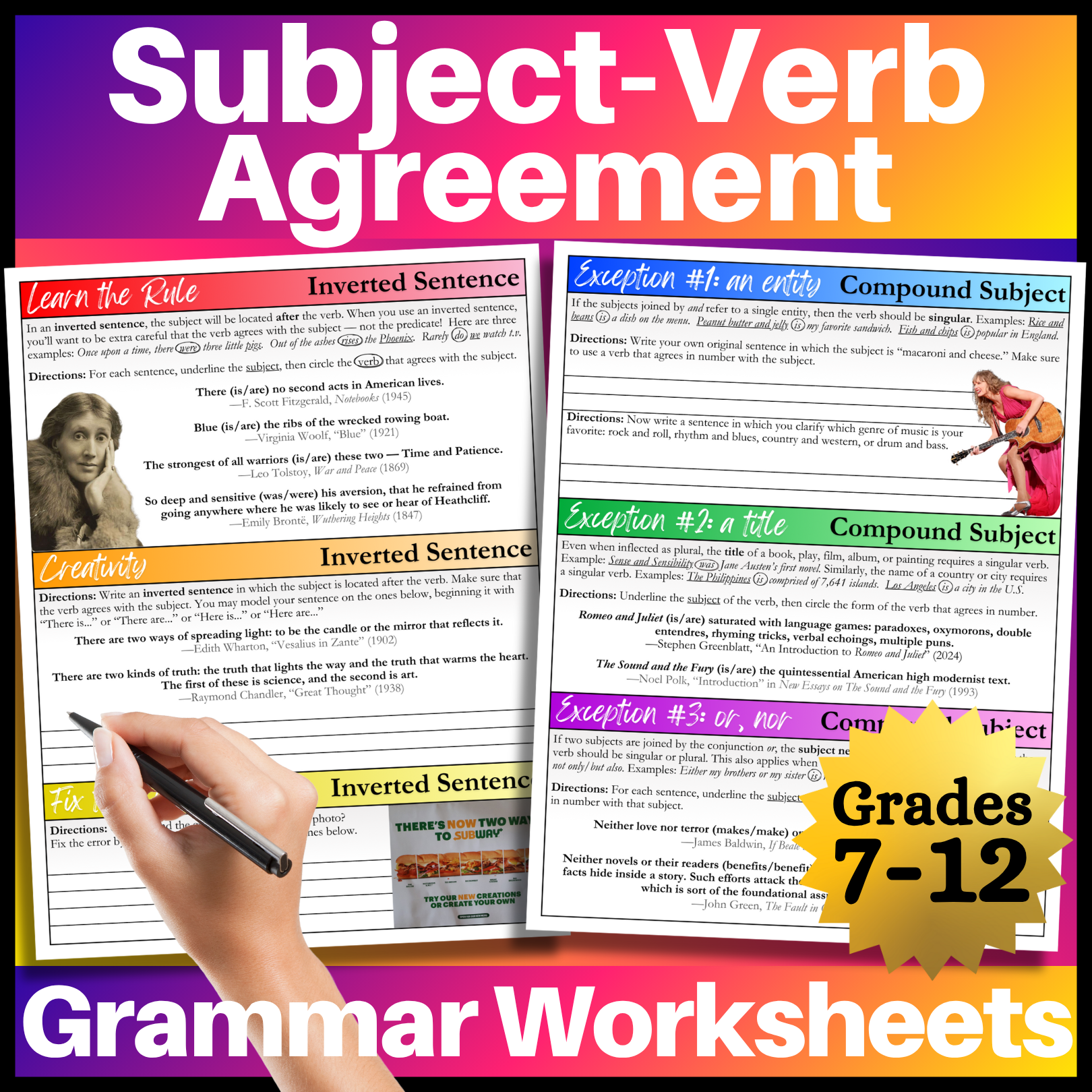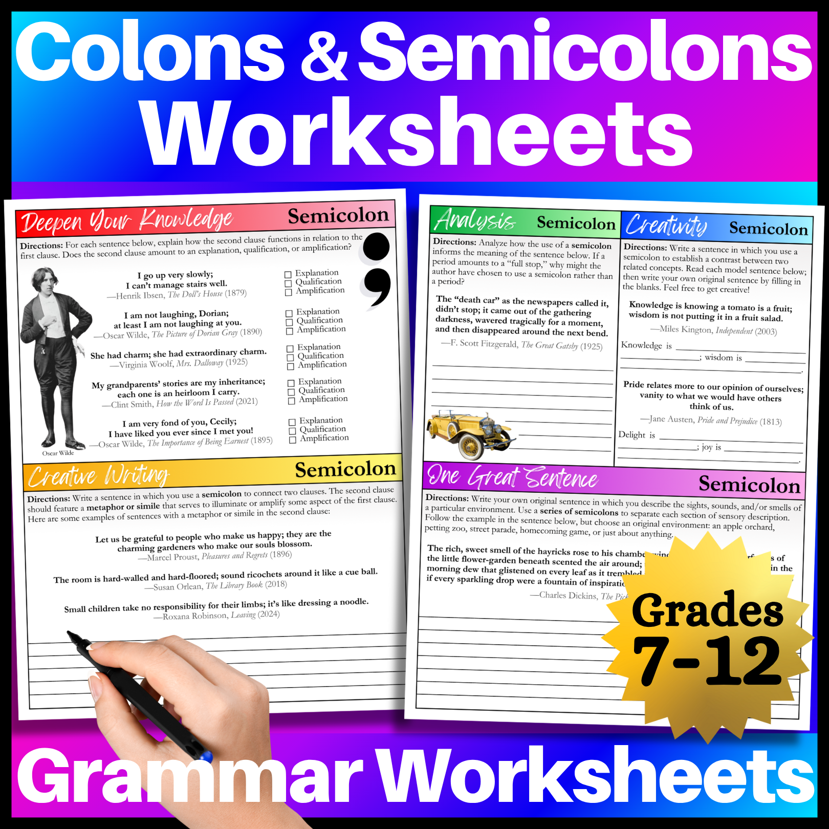Tired of the dry sentences in traditional grammar textbooks? These worksheets feature 400+ mentor sentences written by some of the BEST authors in the English language: William Shakespeare, Jane Austen, John Keats, Mary Shelley, Mark Twain, Virginia Woolf, F. Scott Fitzgerald, Zora Neale Hurston, Toni Morrison, Sandra Cisneros, Mary Oliver, Delia Owens, Jhumpa Lahiri, Louise Erdrich, Celest Ng, and many more. Best of all, the worksheets feature 150+ writing prompts that invite students to write their own original sentences. Tackle grammar with top-quality lessons that students will never forget!