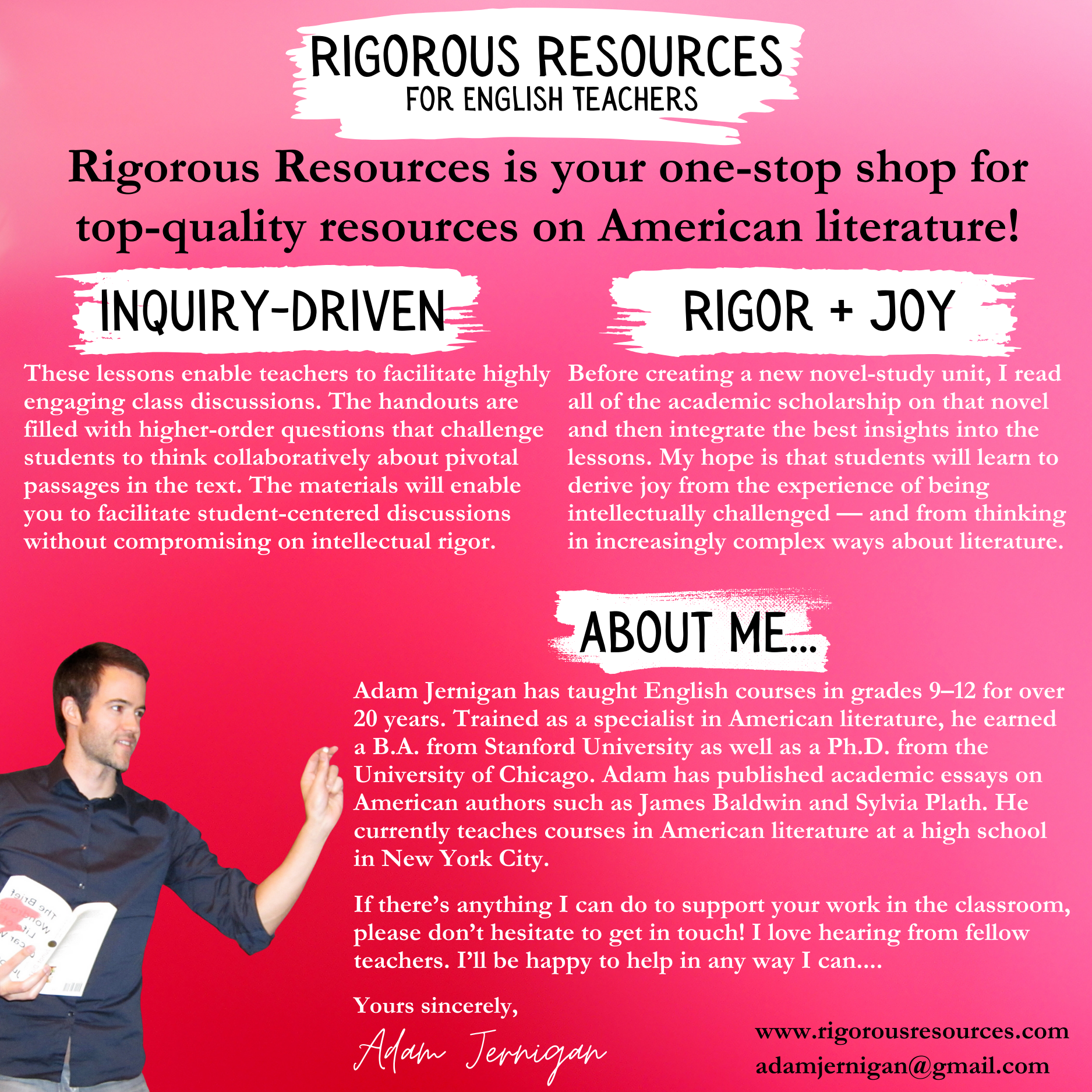 My store is called “Rigorous Resources” because all of the resources contain rigorous content that will motivate students to engage in thoughtful analysis of literary texts. If there is anything I can do to support your amazing work in the classroom, please don't hesitate to get in touch!