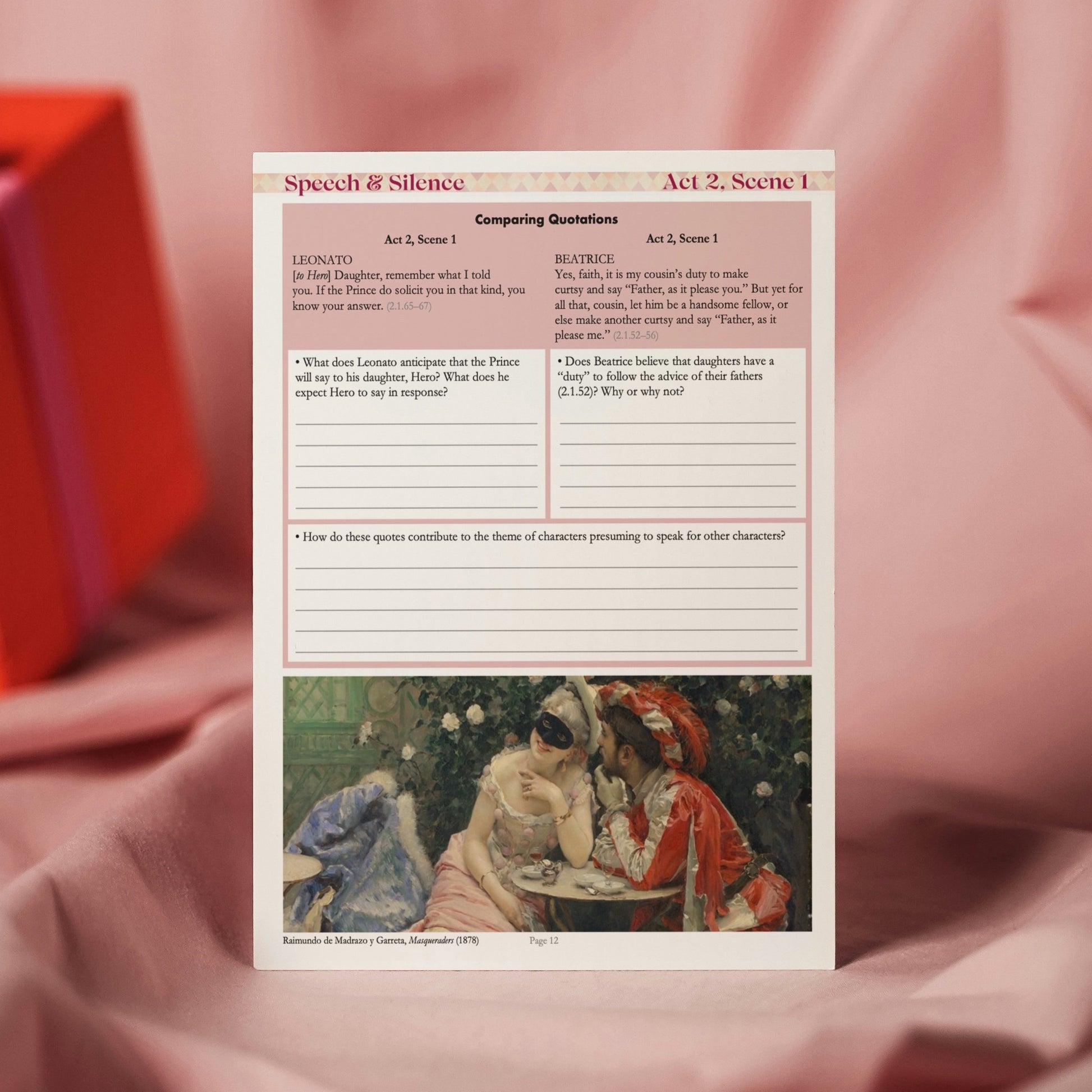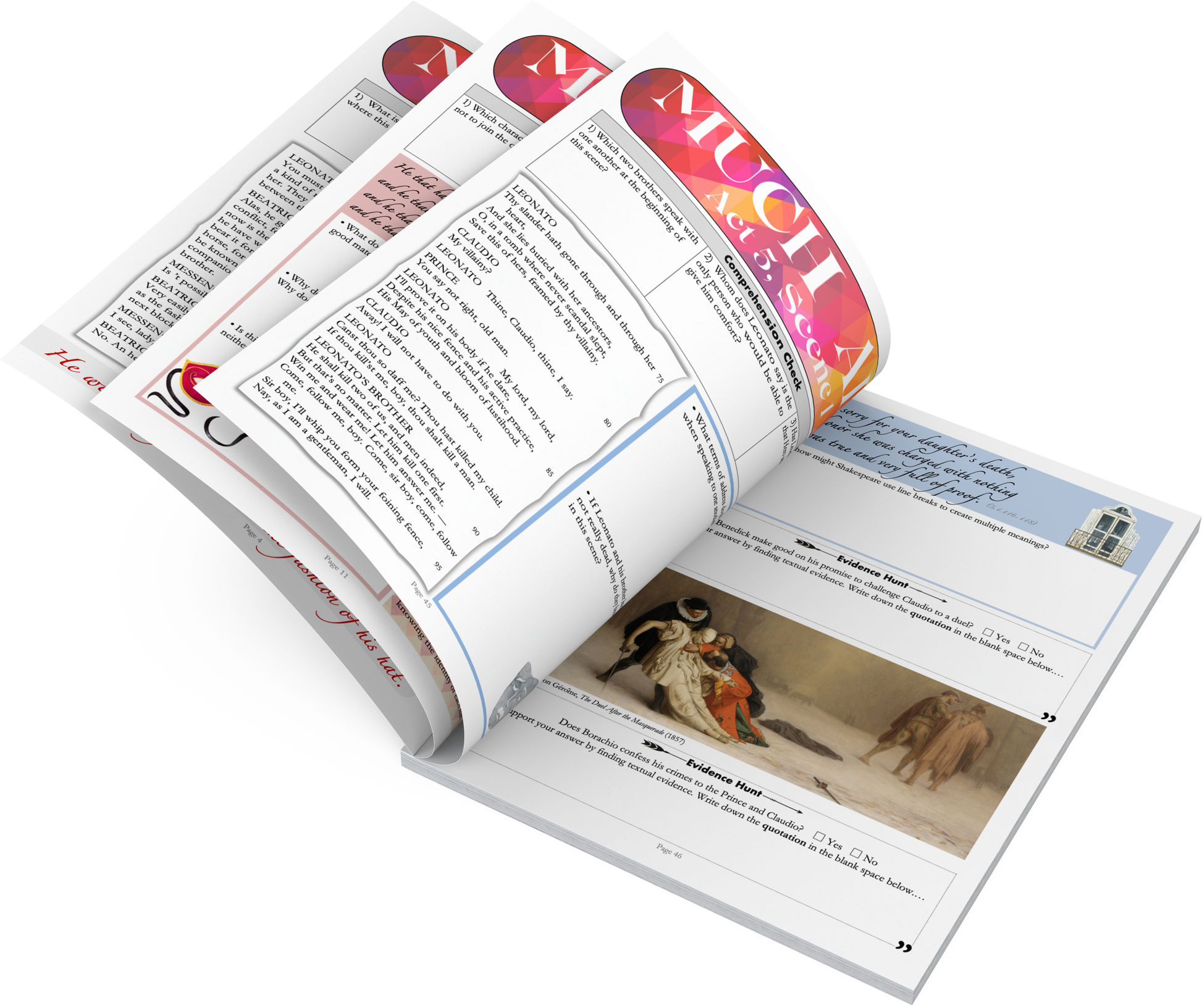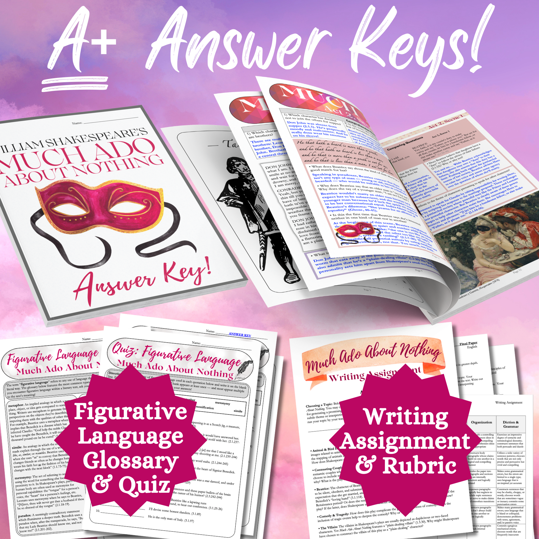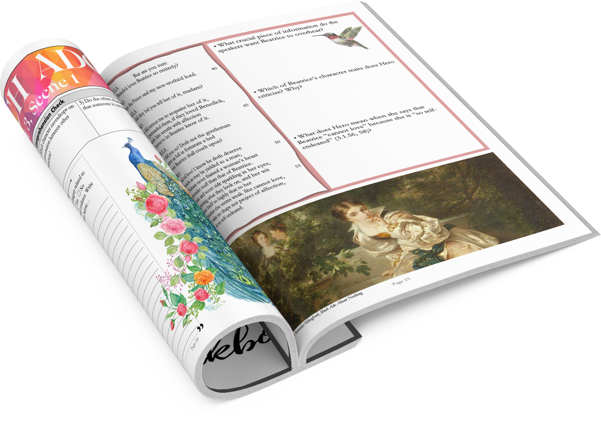 • STUDENT WORKBOOKS on Much Ado About Nothing: The 50-page workbook features colorful and highly engaging worksheets on EVERY scene in Shakespeare's comedy. Each worksheet is divided into sections which invite students to engage with the text in a variety of different ways: